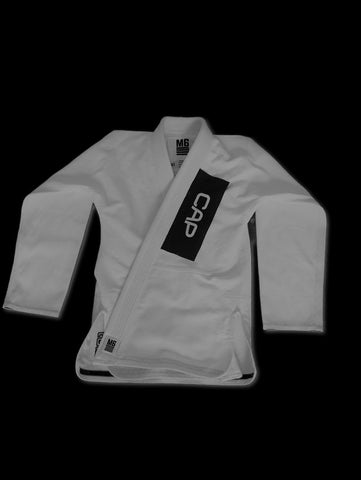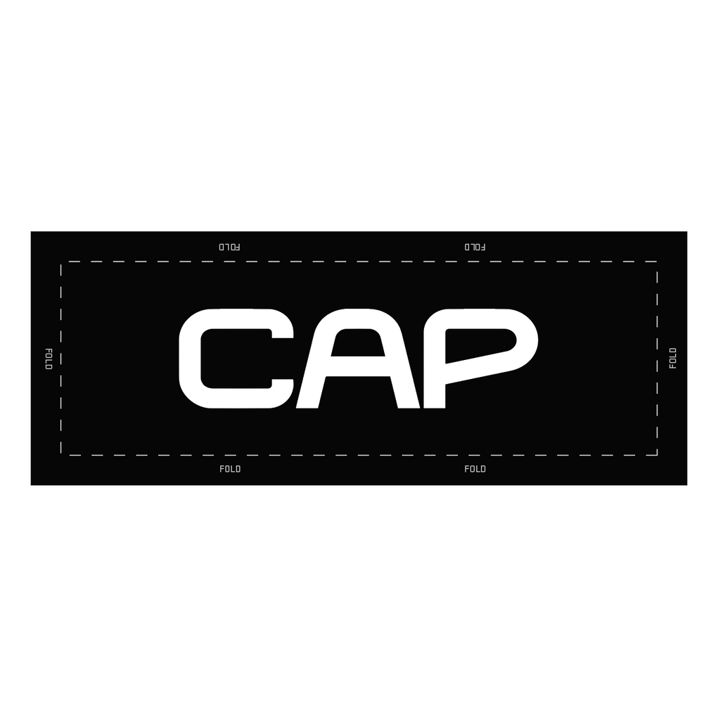 CAP logo white on black 10" x 3.25" (kimono not included)