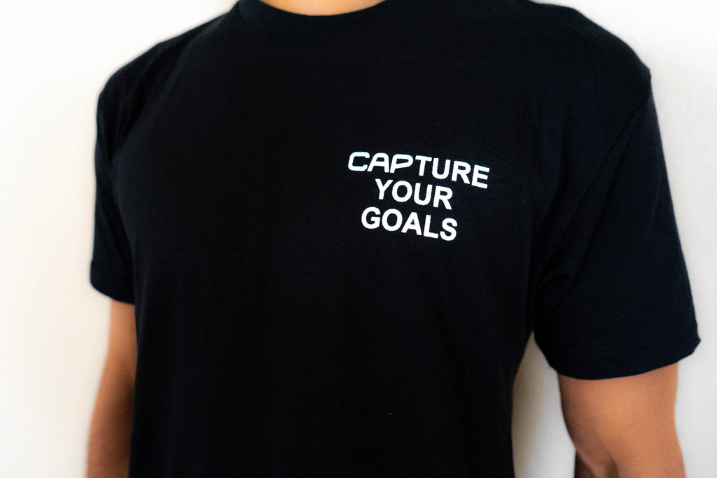 The CAPTURE YOUR GOALS shirt is a premium fitted CVC crew neck. This relaxed fit tee is printed with a front screen CAPTURE YOUR GOALS logo located on the left chest.